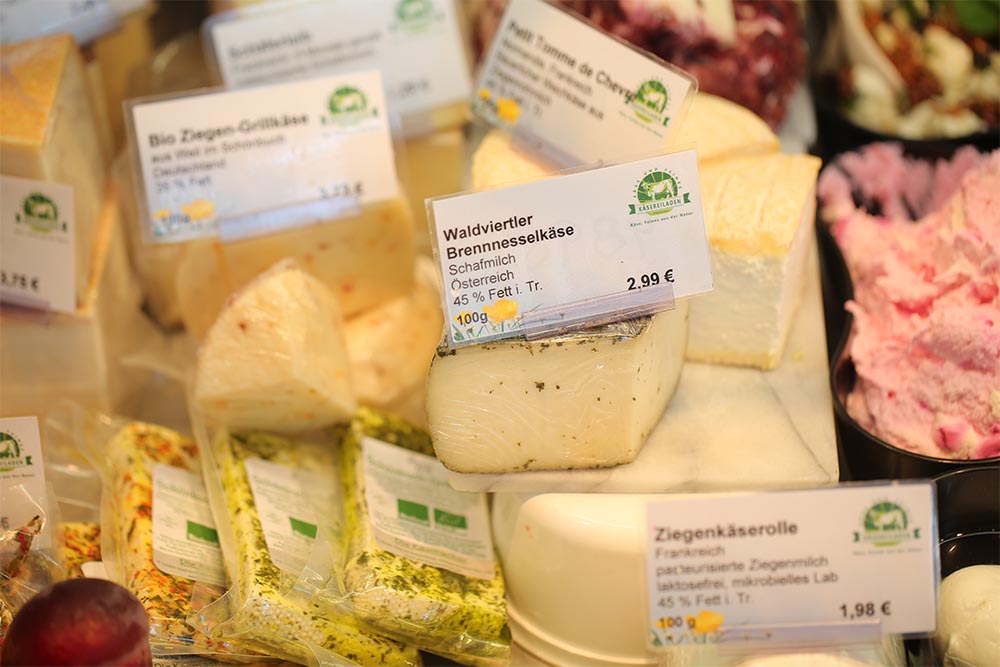 Wir begrüßen Sie ganz herzlich in unserem Käsereiladen in Tübingen, unweit vom Zentrum und Marktplatz entfernt. Unser Geschäft läd zum Verweilen und Genießen ein, denn wir bieten Ihnen nicht nur eine große Auswahl an regionialen Käsesorten, sondern auch selbstgemachte Joghurts, frische Milchwaren und Wurst aus der Region. Wir freuen uns über Ihren Besuch!